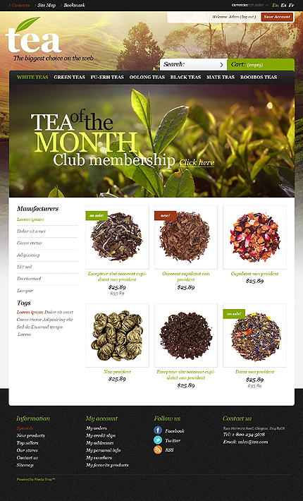 Template Name: Tea Store Item number: 42501 Template Type: PrestaShop Author: Hermes Downloads: 4 PrestaShop Engine: 1.5.2.0 PrestaShop Compatibility: 1.5.x The template is fully compatible with PrestaShop 1.5.x. But sample data SQL files are only compatible with the exact version of PrestaShop Engine it was developed for. Sources Availa...