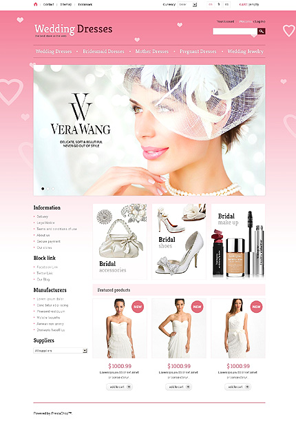 Template Name: Wedding Dresses Item number: 43759 Template Type: PrestaShop Author: Di Downloads: 1 PrestaShop Engine: 1.5.3.1 PrestaShop Compatibility: 1.5.x The template is fully compatible with PrestaShop 1.5.x. But sample data SQL files are only compatible with the exact version of PrestaShop Engine it was developed for. Sources Avai...