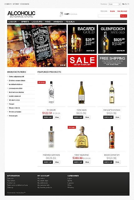 Template Name: Alcoholic Beverages Item number: 41907 Template Type: PrestaShop Author: Hermes Downloads: 6 PrestaShop Engine: 1.5.2.0 PrestaShop Compatibility: 1.5.x The template is fully compatible with PrestaShop 1.5.x. But sample data SQL files are only compatible with the exact version of PrestaShop Engine it was developed for. Sour...