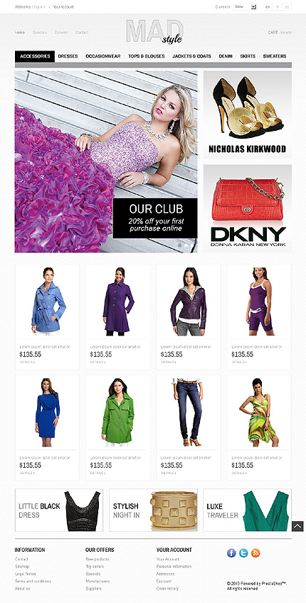 Template Name: Mad Style Item number: 43192 Template Type: PrestaShop Author: Di Downloads: 1 PrestaShop Engine: 1.5.2.0 PrestaShop Compatibility: 1.5.x The template is fully compatible with PrestaShop 1.5.x. But sample data SQL files are only compatible with the exact version of PrestaShop Engine it was developed for. Sources Available:...