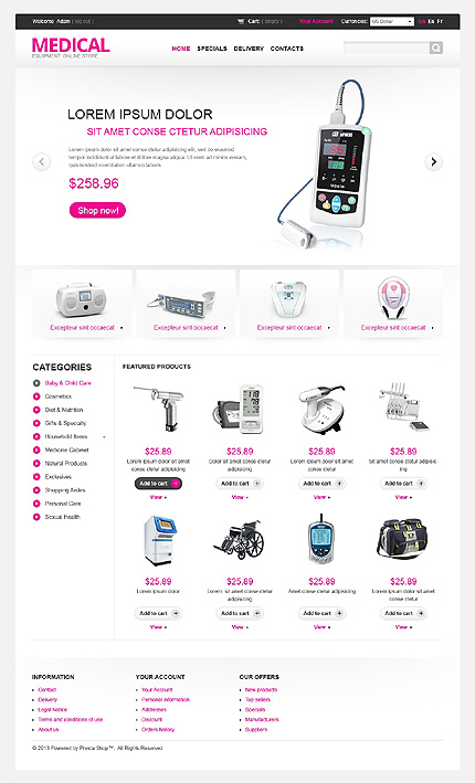 Template Name: Medical Equipment Item number: 43097 Template Type: PrestaShop Author: Hermes Downloads: 1 PrestaShop Engine: 1.5.2.0 PrestaShop Compatibility: 1.5.x The template is fully compatible with PrestaShop 1.5.x. But sample data SQL files are only compatible with the exact version of PrestaShop Engine it was developed for. Source...