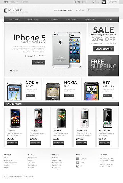 Template Name: Mobile Phones Item number: 43093 Template Type: PrestaShop Author: Ares Downloads: 4 PrestaShop Engine: 1.5.2.0 PrestaShop Compatibility: 1.5.x The template is fully compatible with PrestaShop 1.5.x. But sample data SQL files are only compatible with the exact version of PrestaShop Engine it was developed for. Sources Avai...