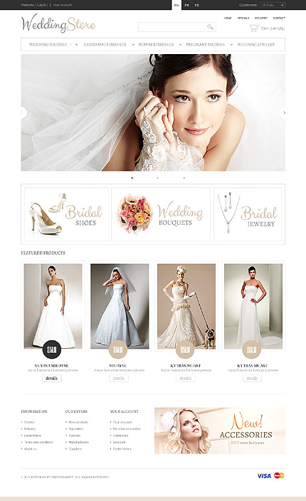 Template Name: Pretty Bride Item number: 43094 Template Type: PrestaShop Author: Delta Downloads: 4 PrestaShop Engine: 1.5.2.0 PrestaShop Compatibility: 1.5.x The template is fully compatible with PrestaShop 1.5.x. But sample data SQL files are only compatible with the exact version of PrestaShop Engine it was developed for. Sources Avai...