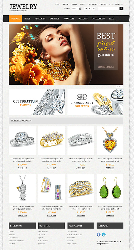 Template Name: Jewelry Theme Item number: 42154 Template Type: PrestaShop Author: Di Downloads: 4 PrestaShop Engine: 1.5.2.0 PrestaShop Compatibility: 1.5.x The template is fully compatible with PrestaShop 1.5.x. But sample data SQL files are only compatible with the exact version of PrestaShop Engine it was developed for. Sources Availa...