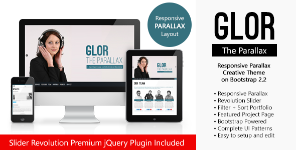 GLOR - HTML5 Responsive Parallax on Bootstrap Template Creative