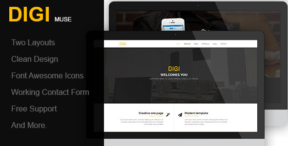 Created 26 March 15 Last Update 26 March 15 Resolution Desktop ThemeForest Files Included Muse File, HTML Files, CSS Files Tags business, clean, creative, digi,...