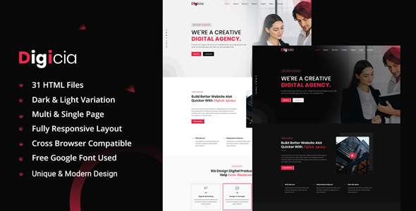 Digicia - Digital Agency amp Portfolio HTML Template TFx