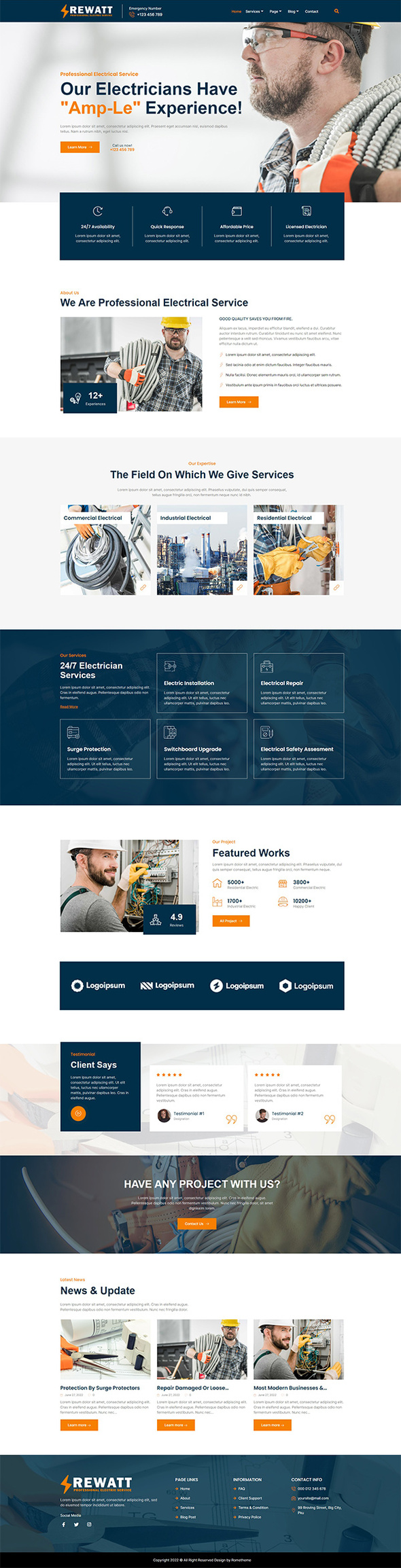 Rewatt - Professional Electrical Services Elementor Template Kit TFx