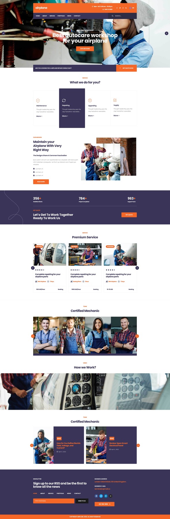 Airplane - Mechanic Workshop Elementor Template Kit TFx