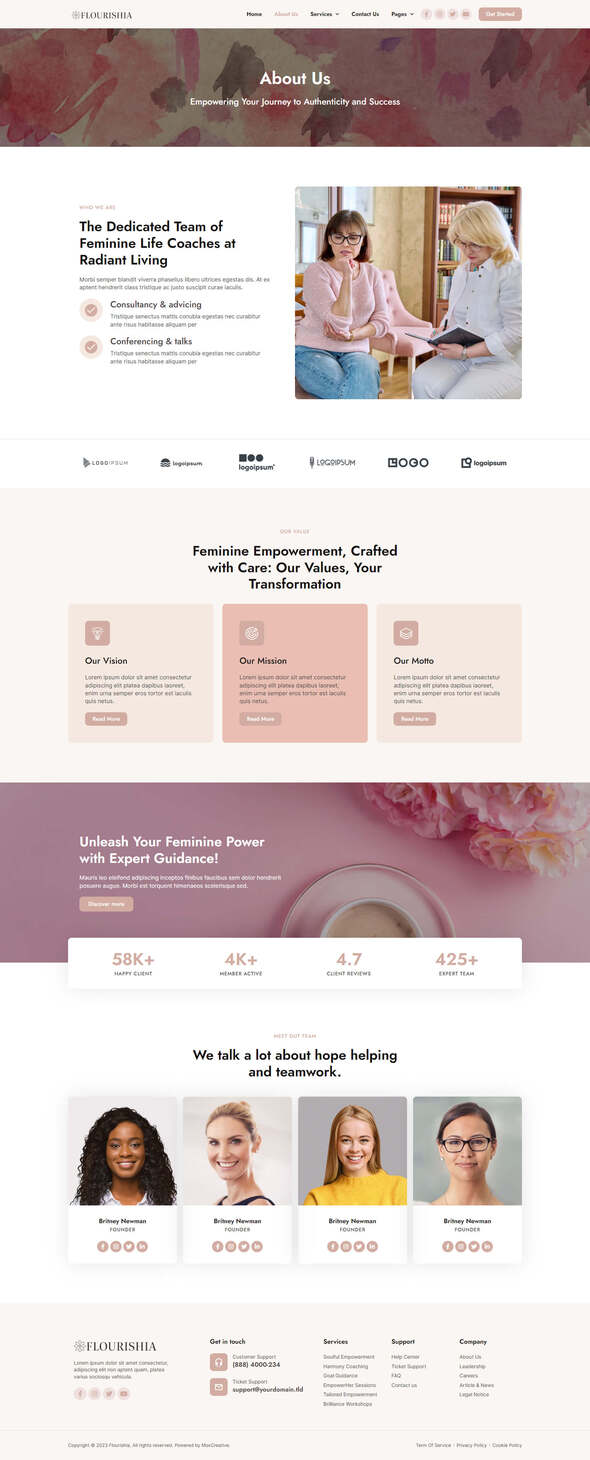 Flourishia - Feminine Business Coaching Elementor Pro Template Kit TFx