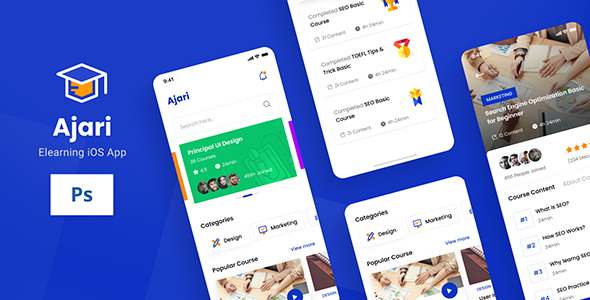 Ajari - E-learning iOS App Design UI Template PSD TFx