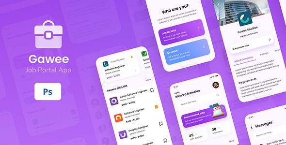 Gawee - Job Portal iOS App Design UI Template PSD TFx