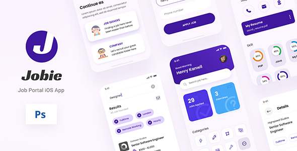 Jobie - Job Portal iOS App Design UI PSD Template TFx