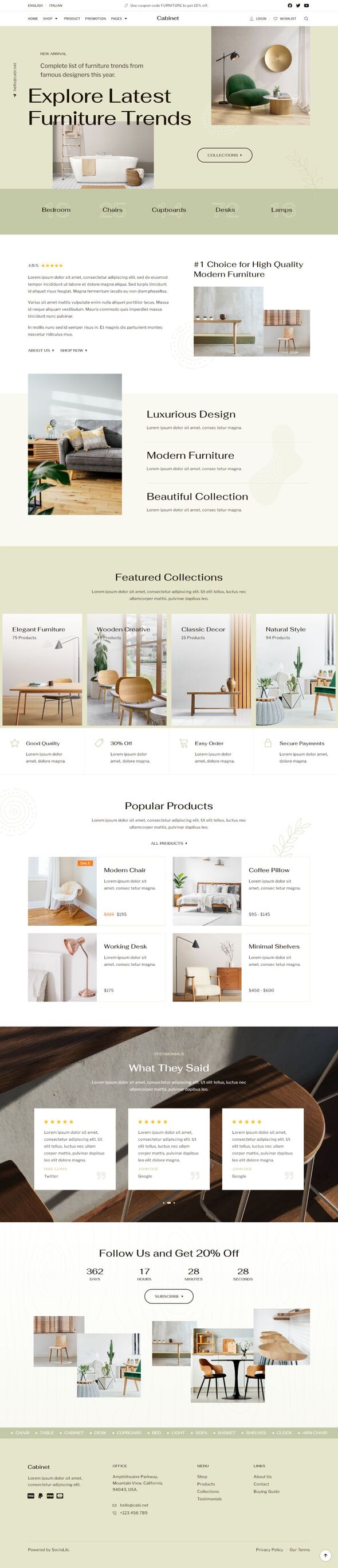 Cabinet - Furniture Store Elementor Template Kit TFx