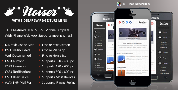 Noiser Mobile Retina | HTML5 & CSS3 And iWebApp Template