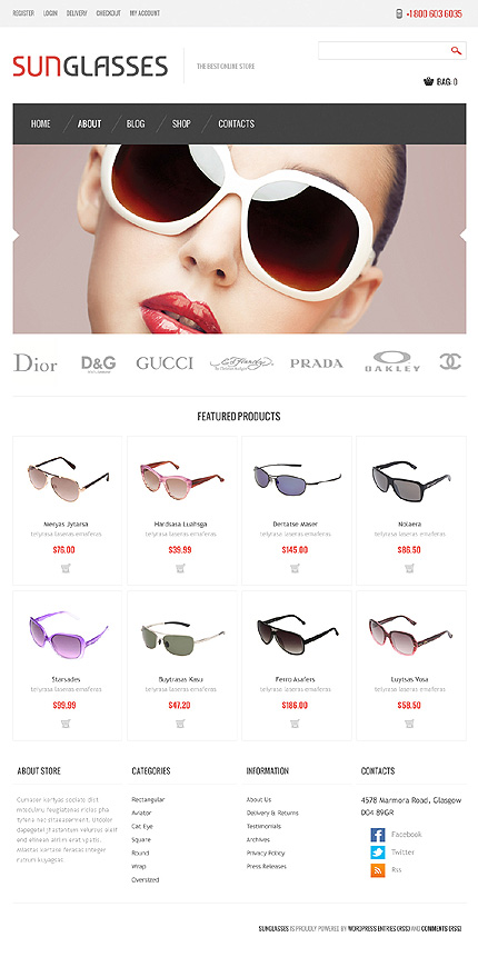 Responsive Sungalsses Store Jigoshop Themes TMT