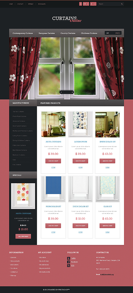 Template Name: Responsive Curtains Store Item number: 44491 Template Type: PrestaShop Author: Astra Downloads: 1 PrestaShop Engine: 1.5.4.0 PrestaShop Compatibility: 1.5.x The template is fully compatible with PrestaShop 1.5.x. But sample data SQL files are only compatible with the exact version of PrestaShop Engine it was developed for. ...