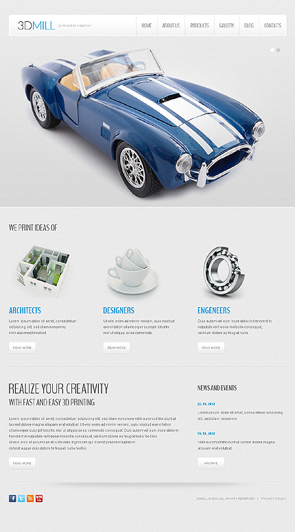 Template Name: 3D Printers Company Item number: 44310 Template Type: Joomla Author: Oldman Downloads: 3 Joomla! Engine: 2.5.9 Joomla! Compatibility: 2.5.7, 2.5.8, 2.5.9 Sources Available: .PSD;.PHP Software Required: Adobe Photoshop CS+;Adobe Dreamweaver 8+ (or any php-editor);For uncompressing a template ZIP package: WinZip 9+ (Windo...