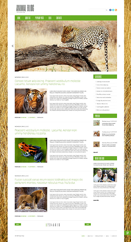 Template Name: White Wild Life WordPress Theme by Di Item number: 47833 Template Type: WordPress Author: Di Downloads: 0 WordPress Engine: 3.7.x WordPress Compatibility: 3.5.x, 3.6.x, 3.7.x, 3.8.x Cherry Framework Version: 3.0 Sources Available: .PSD;.PHP;This theme is widgetized Software Required: Adobe Photoshop CS+;Apache Server;For uncompressing a template ZIP package: WinZip 9+ (Windows); Stuffit Expander ...