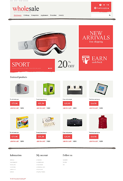 Template Name: White Fashion Store PrestaShop Theme by Cowboy Item number: 47800 Template Type: PrestaShop Author: Cowboy Downloads: 0 PrestaShop Engine: 1.5.6.1 PrestaShop Compatibility: 1.5.x The template is fully compatible with PrestaShop 1.5.x. But sample data SQL files are only compatible with the exact version of PrestaShop Engine it was developed for. Sources Available:...