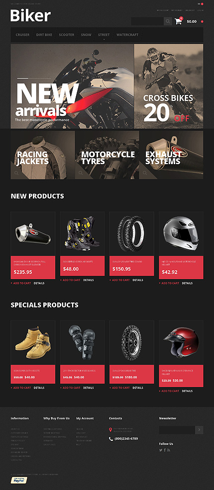 Template Name: Black Biker Club Magento Theme by Cowboy Item number: 47672 Template Type: Magento Author: Cowboy Downloads: 1 Magento Engine: 1.8.0.x Magento Compatibility: 1.8.0.x Magento Extensions: Cloud Zoom, Social Icons Sources Available: .PSD;.XML;.PHTML;.CSS Software Required: Adobe Photoshop CS+;Adobe Dreamweaver 8+ (or ...