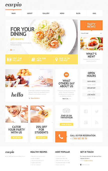 Template Name: White Cafe and Restaurant WordPress Template by Elza Item number: 47527 Template Type: WordPress Author: Elza Downloads: 0 WordPress Engine: 3.6.x WordPress Compatibility: 3.5.x, 3.6.x, 3.7.x Cherry Framework Version: 2.3 Sources Available: .PSD;.PHP;This theme is widgetized Software Required: Adobe Photoshop CS+;A...