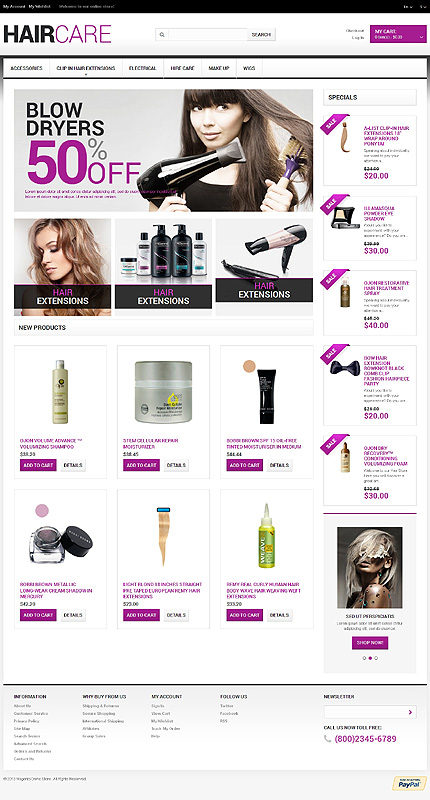 White Hair Salon Magento Theme by Hermes TMT