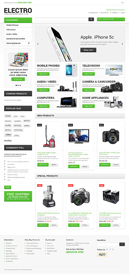 Template Name: White Electronics Store Magento Theme by Hermes Item number: 47480 Template Type: Magento Author: Hermes Downloads: 0 Magento Engine: 1.8.0.x Magento Compatibility: 1.8.0.x Magento Extensions: Cloud Zoom, Social Icons Sources Available: .PSD;.XML;.PHTML;.CSS Software Required: Adobe Photoshop CS+;Adobe Dreamweaver ...