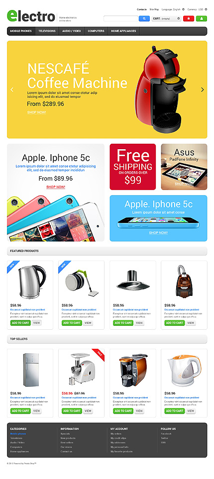 Template Name: White Electronics Store PrestaShop Theme by Hermes Item number: 47302 Template Type: PrestaShop Author: Hermes Downloads: 0 PrestaShop Engine: 1.5.5.0 PrestaShop Compatibility: 1.5.x The template is fully compatible with PrestaShop 1.5.x. But sample data SQL files are only compatible with the exact version of PrestaShop Engine it was developed for. Sources Availa...