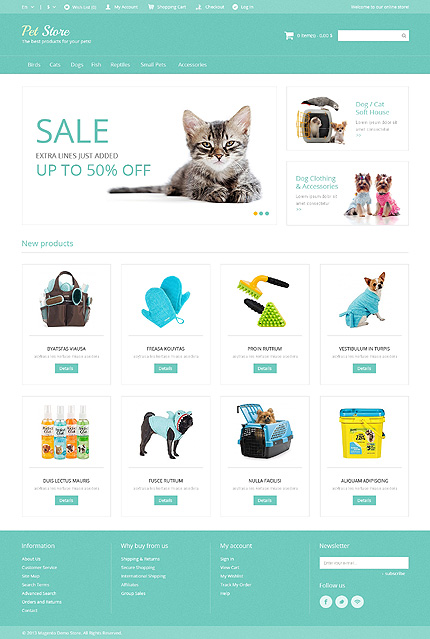 White & Cyan Pet Shop Magento Theme by Angela TMT