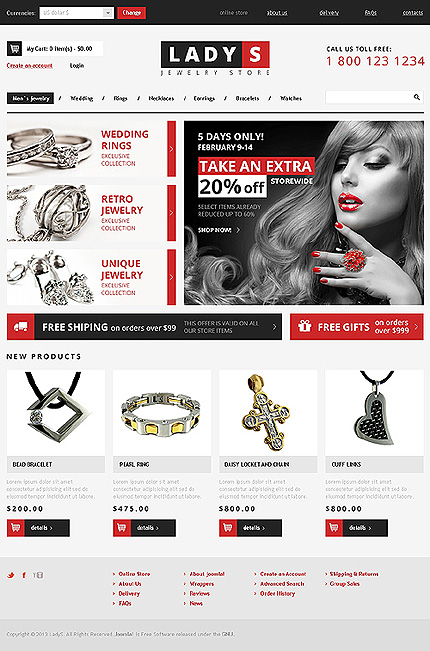 White & Grey Jewelry VirtueMart Theme by Gambit VirtueMart Templates TMT