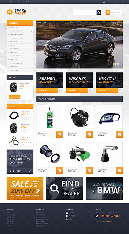 White & Black Auto Parts PrestaShop Theme by Ares ID1818 TMT
