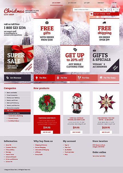 Template Name: Christmas Gift Shop Item number: 47178 Template Type: Magento Author: Glenn Downloads: 0 Magento Engine: 1.8.0.x Magento Compatibility: 1.8.0.x Magento Extensions: Cloud Zoom, Social Icons Sources Available: .PSD;.XML;.PHTML;.CSS Software Required: Adobe Photoshop CS+;Adobe Dreamweaver 8+ (or any php-editor);For un...