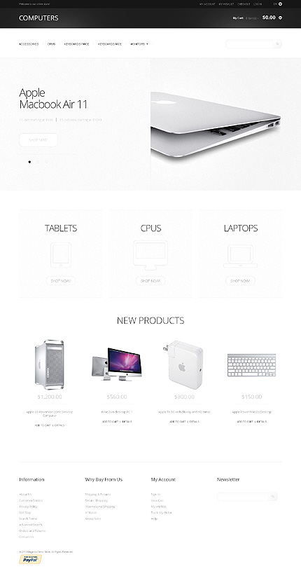 Template Name: Computers Item number: 47095 Template Type: Magento Author: Cowboy Downloads: 0 Magento Engine: 1.7.0.x Magento Compatibility: 1.7.x Magento Extensions: Cloud Zoom, Social Icons Sources Available: .PSD;.XML;.PHTML;.CSS Software Required: Adobe Photoshop CS+;Adobe Dreamweaver 8+ (or any php-editor);For uncompressing...