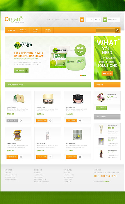 Template Name: White & Green Cosmetics Store PrestaShop Theme by Ares Item number: 46627 Template Type: PrestaShop Author: Ares Downloads: 0 PrestaShop Engine: 1.5.4.1 PrestaShop Compatibility: 1.5.x The template is fully compatible with PrestaShop 1.5.x. But sample data SQL files are only compatible with the exact version of PrestaShop Eng...
