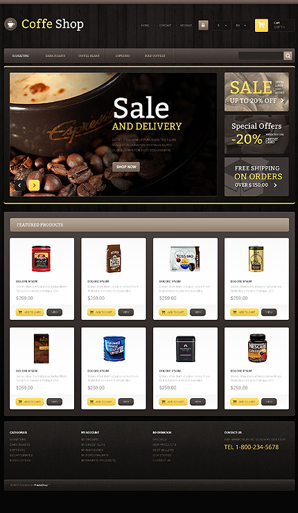 Black & White Coffee Shop PrestaShop Theme by Ares PrestaShop TMT