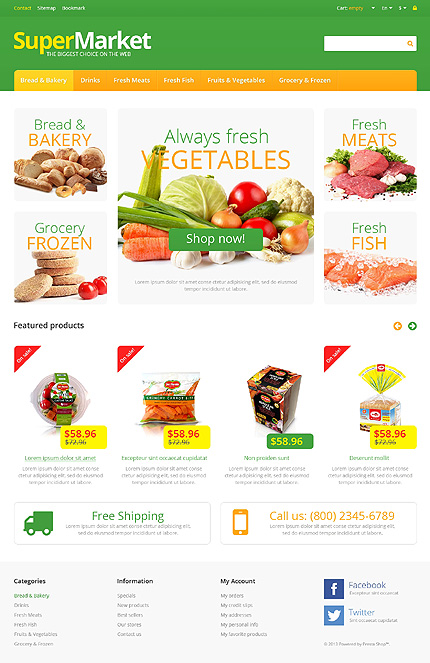 Template Name: White Grocery Store PrestaShop Theme by Hermes Item number: 46630 Template Type: PrestaShop Author: Hermes Downloads: 0 PrestaShop Engine: 1.5.4.1 PrestaShop Compatibility: 1.5.x The template is fully compatible with PrestaShop 1.5.x. But sample data SQL files are only compatible with the exact version of PrestaShop Engine it...