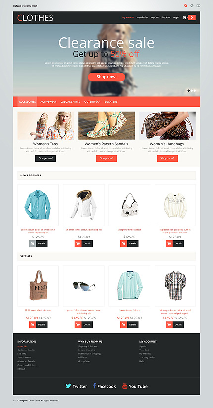White & Grey Fashion Store Magento Theme by Hermes Magento TMT