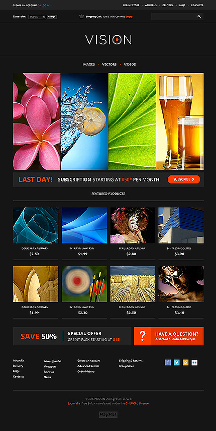 Template Name: Black Stock Photo VirtueMart Template by Delta Item number: 46450 Template Type: VirtueMart Author: Delta Downloads: 0 VirtueMart Engine: 2.0.18 VirtueMart Compatibility: 2.0.12, 2.0.14, 2.0.16d, 2.0.18, 2.0.20b, 2.0.22a Joomla! Engine: 2.5.14 Joomla! Compatibility: 2.5.14 Sources Available: .HTML; .PSD;.PHP;.XML;.C...