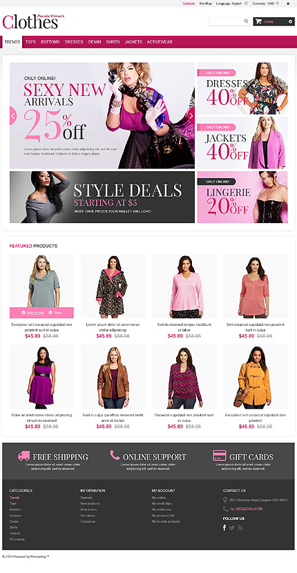Template Name: White & Black Fashion Store PrestaShop Theme by Hermes Item number: 46524 Template Type: PrestaShop Author: Hermes Downloads: 0 PrestaShop Engine: 1.5.4.1 PrestaShop Compatibility: 1.5.x The template is fully compatible with PrestaShop 1.5.x. But sample data SQL files are only compatible with the exact version of PrestaShop E...