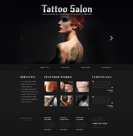 Black Tattoo Salon Joomla Template by Glenn Joomla TMT