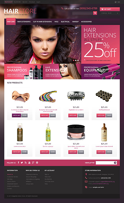 Template Name: Responsive Hair Store Item number: 46552 Template Type: Magento Author: Hermes Downloads: 0 Magento Engine: 1.7.0.x Magento Compatibility: 1.7.x Magento Extensions: Cloud Zoom, Social Icons Sources Available: .PSD;.XML;.PHTML;.CSS Software Required: Adobe Photoshop CS+;Adobe Dreamweaver 8+ (or any php-editor);For u...