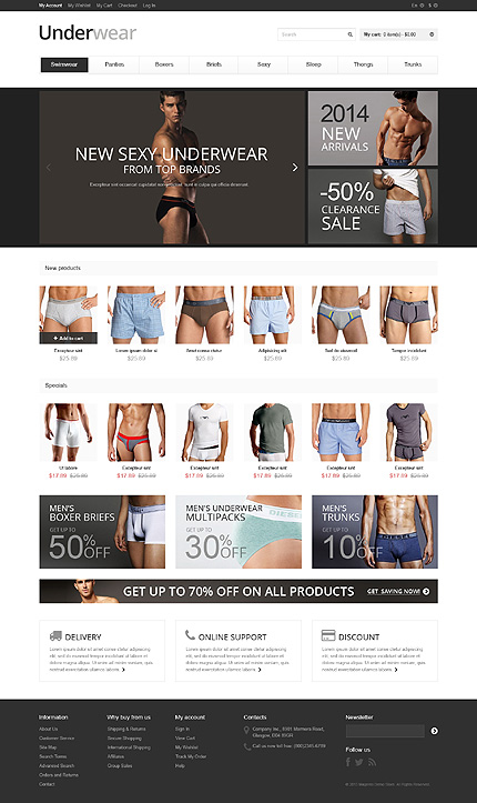 White & Black Men's Underwear Magento Theme by Hermes Magento TMT