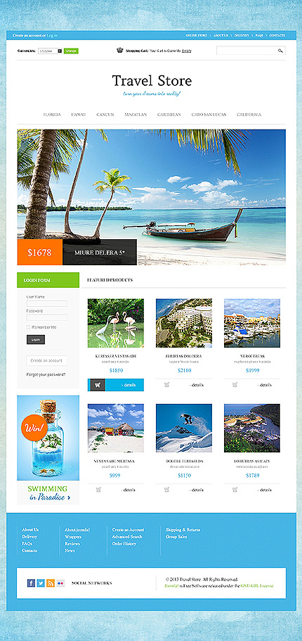 White & Cyan Travel Store VirtueMart Template by Delta VirtueMart Templates TMT