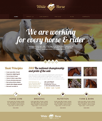 Template Name: White & Brown Horse WordPress Theme by Glenn Item number: 45687 Template Type: WordPress Author: Glenn Downloads: 0 WordPress Engine: 3.5.x WordPress Compatibility: 3.2.x - 3.4.x, 3.5.x Cherry Framework Version: 2.0 Sources Available: .PSD;.PHP;This theme is widgetized Software Required: Adobe Photoshop CS+;Apache ...