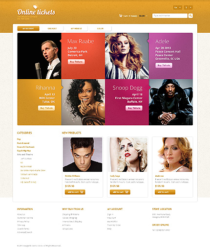 White Tickets Website Magento Theme by Glenn Site Templates TMT