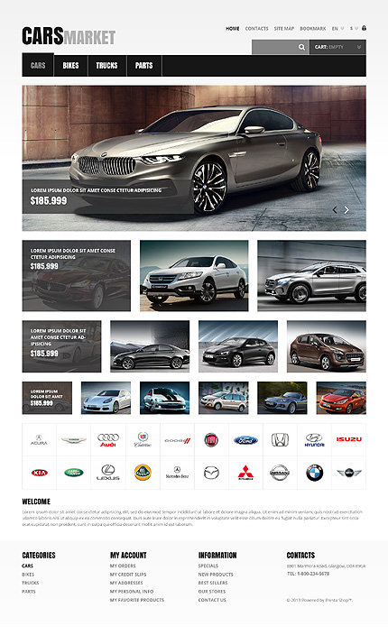 Template Name: White & Black Car Dealer PrestaShop Theme by Hermes Item number: 45767 Template Type: PrestaShop Author: Hermes Downloads: 0 PrestaShop Engine: 1.5.4.1 PrestaShop Compatibility: 1.5.x The template is fully compatible with PrestaShop 1.5.x. But sample data SQL files are only compatible with the exact version of PrestaShop Engi...