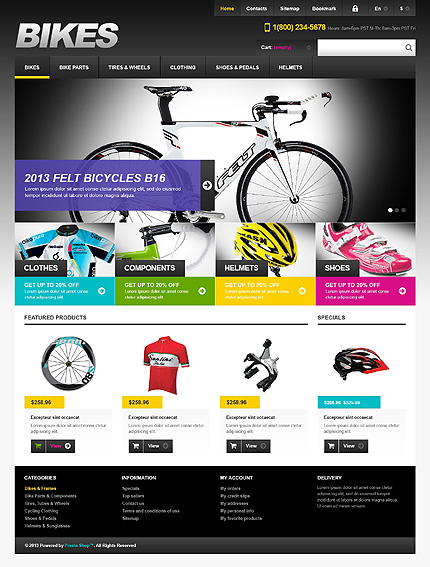 White & Black Cycling PrestaShop Theme by Hermes PrestaShop TMT
