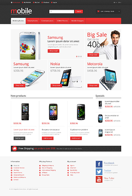 Template Name: White Mobile Store Magento Theme by Hermes Item number: 45761 Template Type: Magento Author: Hermes Downloads: 0 Magento Engine: 1.7.0.x Magento Compatibility: 1.7.x Magento Extensions: Cloud Zoom, Social Icons Sources Available: .PSD;.XML;.PHTML;.CSS Software Required: Adobe Photoshop CS+;Adobe Dreamweaver 8+ (or ...