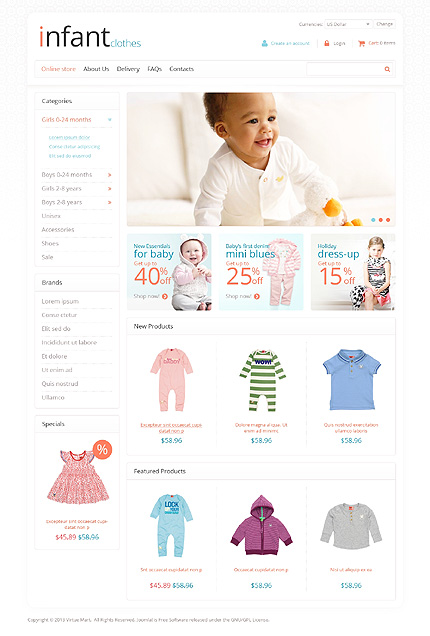 Template Name: White Newborn VirtueMart Template by Hermes Item number: 45722 Template Type: VirtueMart Author: Hermes Downloads: 0 VirtueMart Engine: 2.0.20b VirtueMart Compatibility: 2.0.12, 2.0.14, 2.0.16d, 2.0.18, 2.0.20b Joomla! Engine: 2.5.10 Joomla! Compatibility: 2.5.10 Sources Available: .HTML; .PSD;.PHP;.XML;.CSS;.JS ...